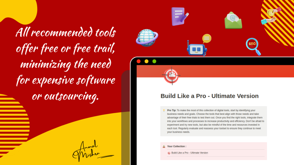 - Saves Time and Money: With Build Like a Pro, you'll save both time and money. Instead of spending hours trying to finding out free tools to create an online project and MVP, you can use any tools to get up and running in no time.