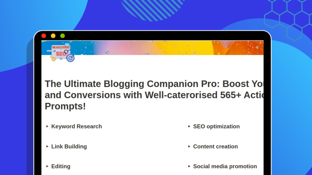 Are you tired of struggling to increase your blog's traffic and conversions? Do you wish there was a more efficient and effective way to manage all aspects of your blog? Look no further than "The Ultimate Blogging Companion: Boost Your Traffic and Conversions with Well-caterorised Actionable Prompts!"