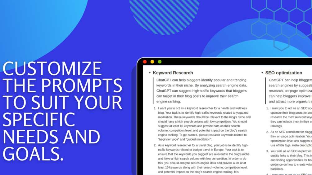 We understand that your time is valuable, which is why we've made sure that each prompt is well-caterorised and actionable, saving you the hassle of figuring things out on your own. Whether you're a beginner or an experienced blogger, our product is designed to make your life easier and more productive.