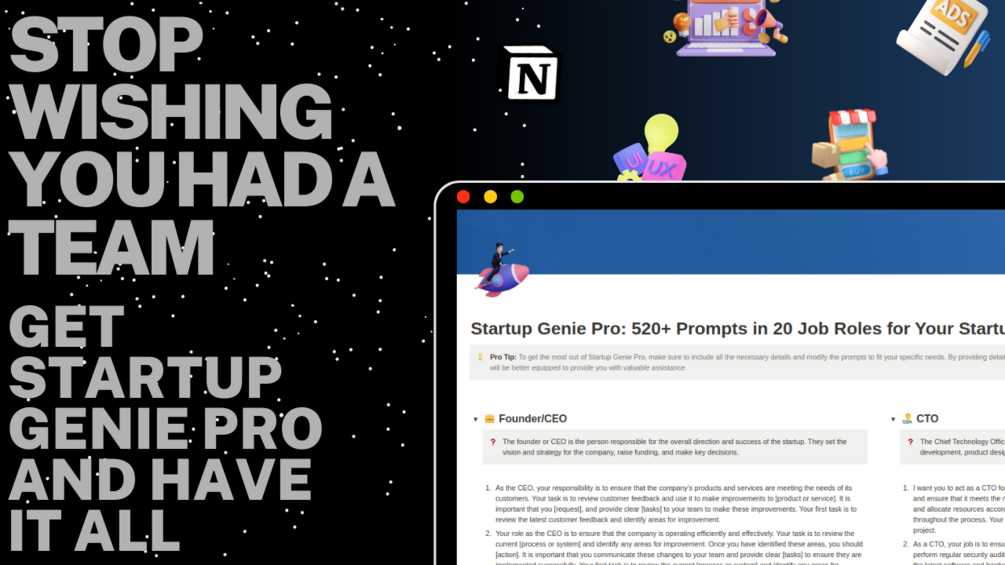 Are you struggling to get your startup off the ground due to a lack of resources or expert advice? Are you tired of struggling to manage all aspects of your startup alone? Do you find yourself wishing you had access to expert advice and support in various areas of your business without having to hire a team? Look no further than Startup Genie Pro: The Ultimate Startup Assistant.